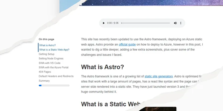 I was keen to add a table of contents to the article page. This was partly to help users but it also was to help me write clearer and more structured posts. This was the most complicated of all the changes.